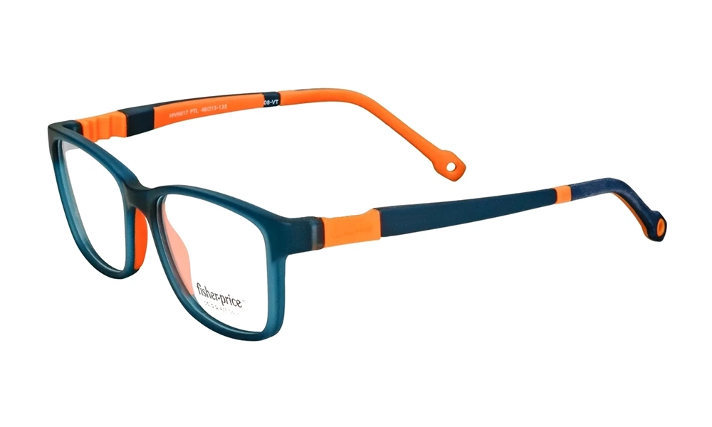 ПодробнееДетская прямоугольная оправа FPVN017 PTL - оригинальный товар любимого многими бренда Fisher-Price. Изготовлена из гипоаллергенного пластика повышенной прочности. Модель представлена в бирюзовом цвете с оранжевыми элементами. В комплекте две синие резинки. Оправа станет идеальным выбором для мальчиков с круглой или овальной формой лица.