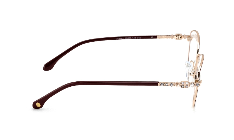 ПодробнееЖенская оправа VY 1461 C50 формы "Кошачий глаз" - оригинальный товар российского бренда Валентин Юдашкин, который подчеркнет ваш стиль. Изготовлена из пластика и металла, что придает ей высокую прочность, износоустойчивость и пластичность. Модель представлена в бордовом цвете с золотыми дужками, украшенными стразами. Оправа станет идеальным выбором для обладателей почти любой формы лица.